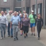 Het was al aardig druk in wijkhuis De Fonkel. Ik heb het over maandagmorgen, 3 september om 11:00 uur. Vandaag zou er een nieuw project geopend worden waar men met plezier aan kan beginnen. Het was de beweegroute wandeling van Stichting Jibb Helmond, een van de twaalf wandelingen die er in Helmond zijn. In diverse wijken bestond er zo’n wandeling en die waren herkenbaar aan de opvallende gele pijlen die op de trottoirs waren aangebracht. Vandaag zou de wandelroute geopend worden door de wethouders Erik de Vries en Harrie van Dijk en zij werden evenals de andere deelnemers welkom geheten door enkele bekenden van Jibb: Berbel van Bree, algemeen manager, Gerard Feijen, Kristian van den Nouwlant en Sophie Pennock. Na een korte toespraak van de wethouder Harrie van Dijk en Gerard Feyen werd er een bord onthuld waar op de wandelroute was vermeld. De wandeling was ongeveer 4 km en zou ongeveer een klein uurtje duren. Toen de wandeling eenmaal begonnen was zat er al meteen een vlot tempo in. De wandeling leidde door enkele straten waarvan sommige mensen al zeiden dat zij er nog nooit geweest waren. De groep bestond uit ongeveer 25 deelnemers van allerlei leeftijden. Halverwege kwamen de wandelaars langs de speeltuin Leonardus waar de mensen getrakteerd werden op allerlei verleidelijke dingen zoals bananensoesjes en stukjes banketstaaf. Na een kleine pauze werd het sein “vertrekken” gegeven en de groep zette zich weer in beweging. Ook hier werd er weer een stevig tempo ingezet. Opvallend was wel dat de mensen die toch even wilde zondigen met een sigaret of sigaartje achter aan in de rij liepen. Maar daar hadden de andere wandelaars geen moeite mee. En toen op een gegeven ogenblik werd geroepen door Christian dat er nog een kleine kilometer gelopen moest worden, slaakte sommige wandelaars wel even een zucht. Het was toch een pittige wandeling. En de stemming werd weer opperbest toen iedereen aan tafel kon zitten en getrakteerd werden op een flinke kop stevige kippencrèmesoep en een smakelijk broodje gezond. Deze wandelingen zijn best wel nuttig; buiten het feit dat men op plaatsen komt die niet zo gauw werden bezocht, leer je wel hoe er een wijk uitziet en vooral met mooie locaties…