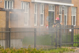 De brandweer rukte omstreeks 15.45 uur uit naar de Markesingel. Daar trof ze naast het Carolus Borromeus College een brandend elektriciteitshuisje aan. Personeel van netbeheerder Enexis sloot de stroom af, waarna de brandweerlieden erger konden voorkomen.