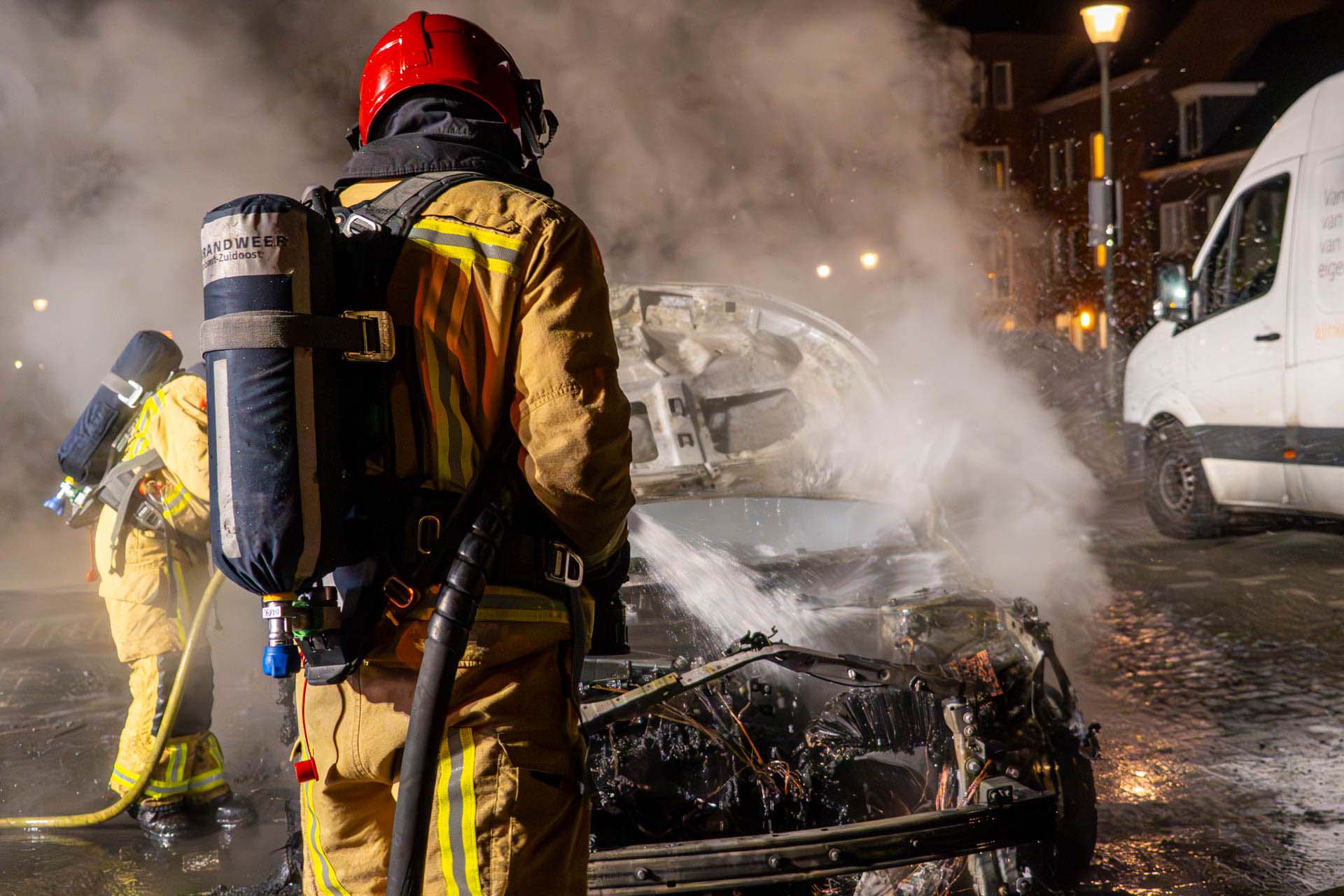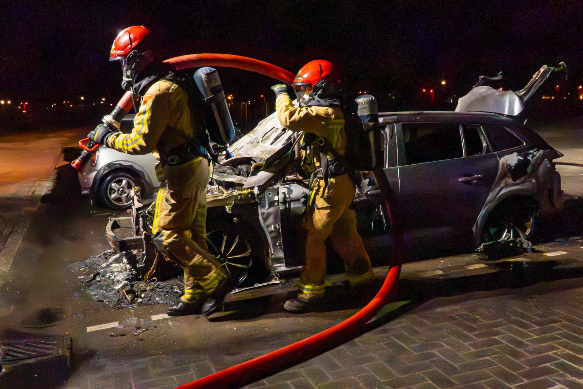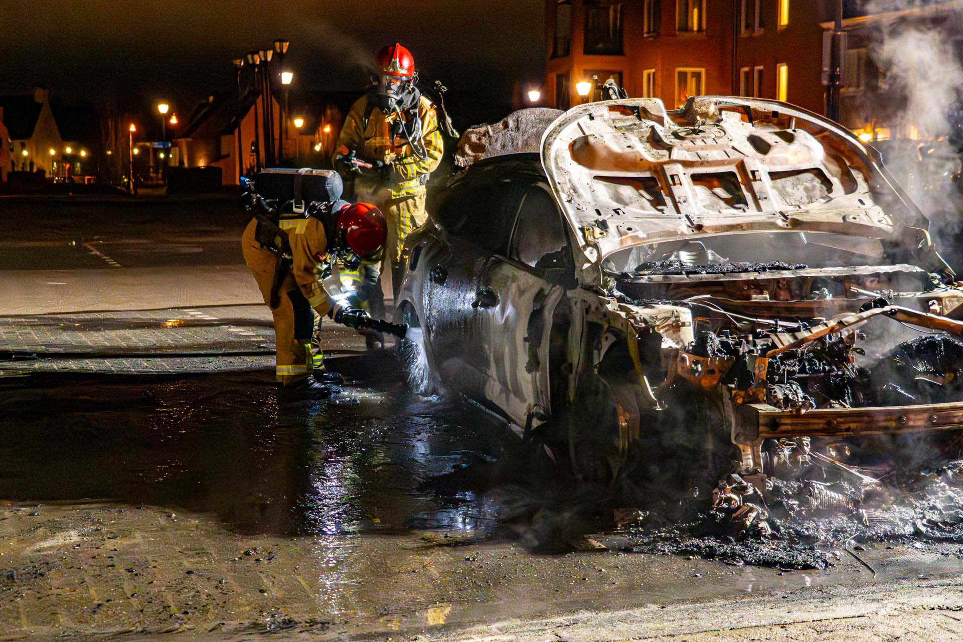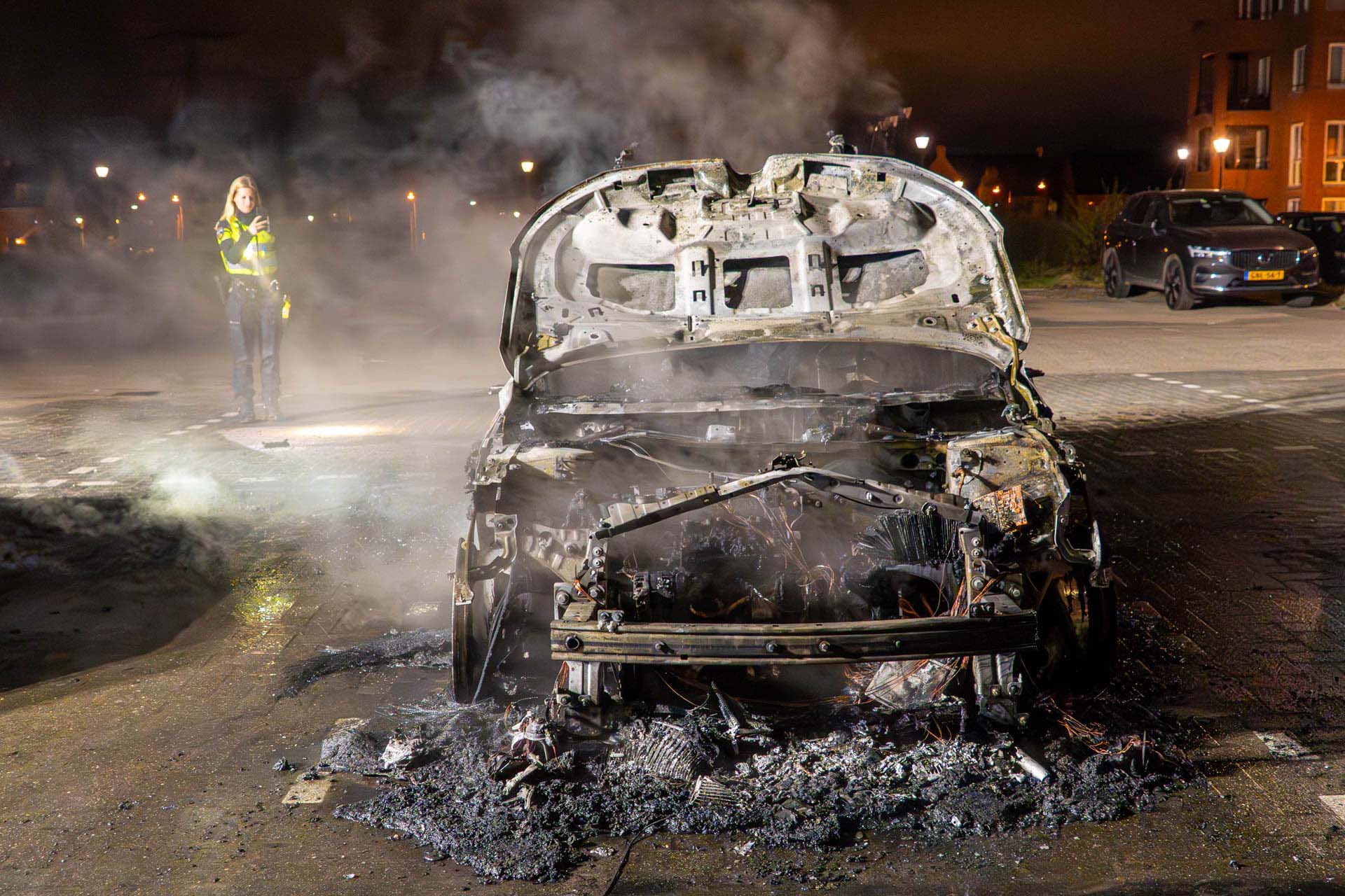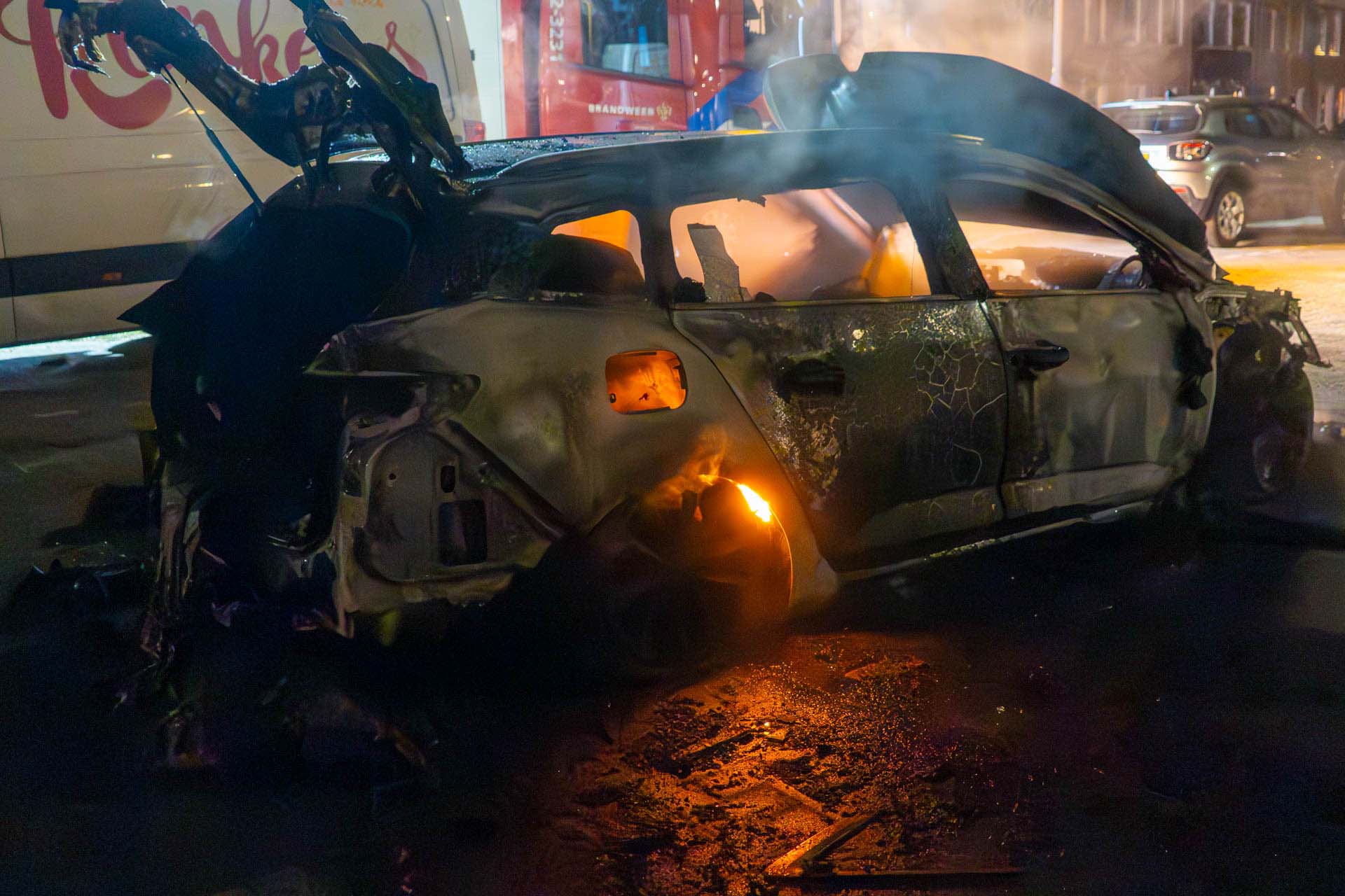 De brandweer probeerde het voertuig nog te blussen, maar dat haalde weinig uit. De auto was niet meer te redden en is total loss verklaard. Een vlakbij geparkeerde auto liep ook behoorlijke schade op door de vlammen. Brandstichting wordt niet uitgesloten en de politie kijkt of er camerabeelden beschikbaar zijn.