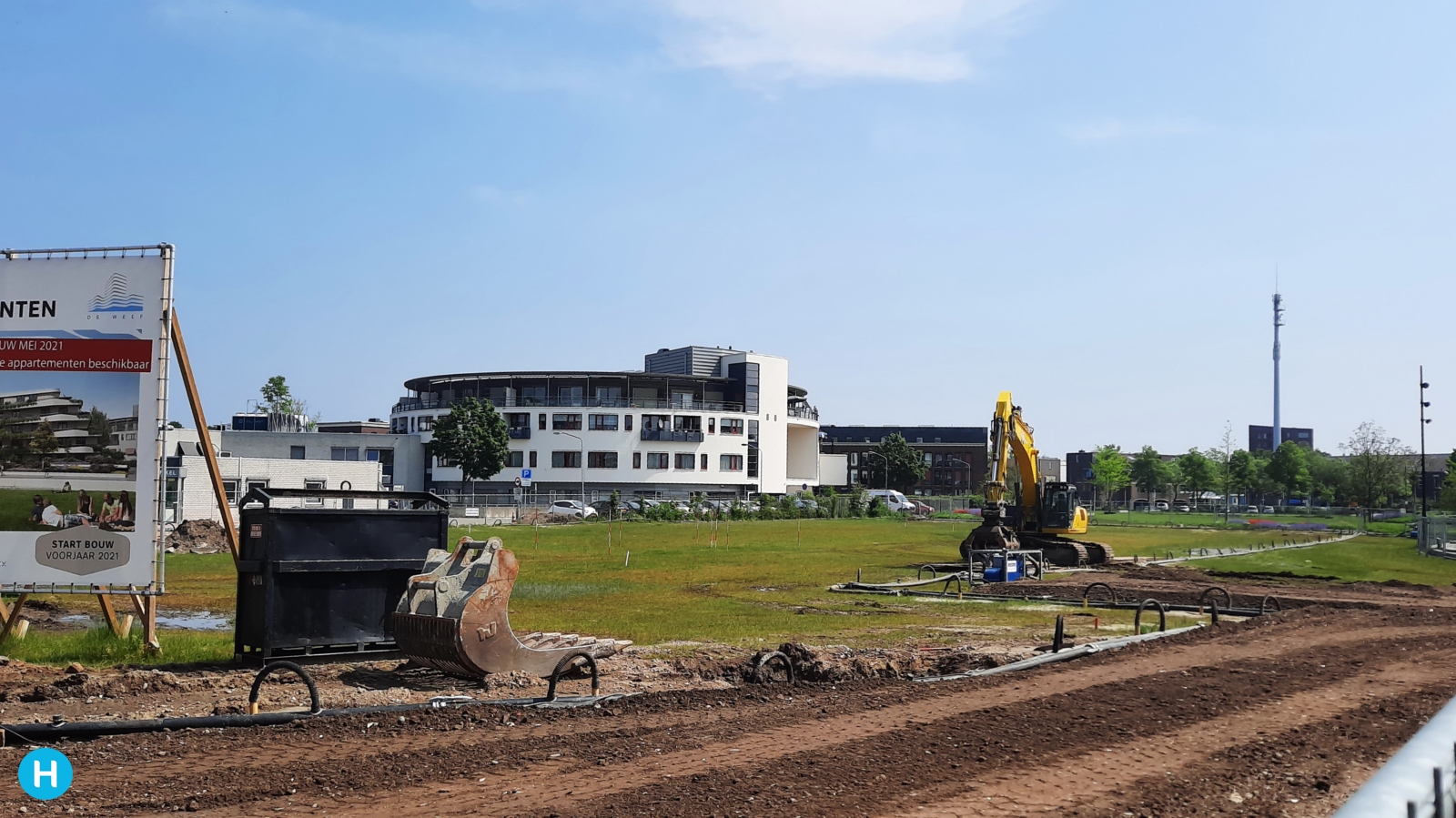 Er is inmiddels ook met het grondwerk begonnen, voor de bouw van de De Weef appartementen, in de hoek bij Keyserinnedael. Zoals u hier ziet, natuur en bouw lopen hier gelijk op, in het Burgemeester Geukerspark.