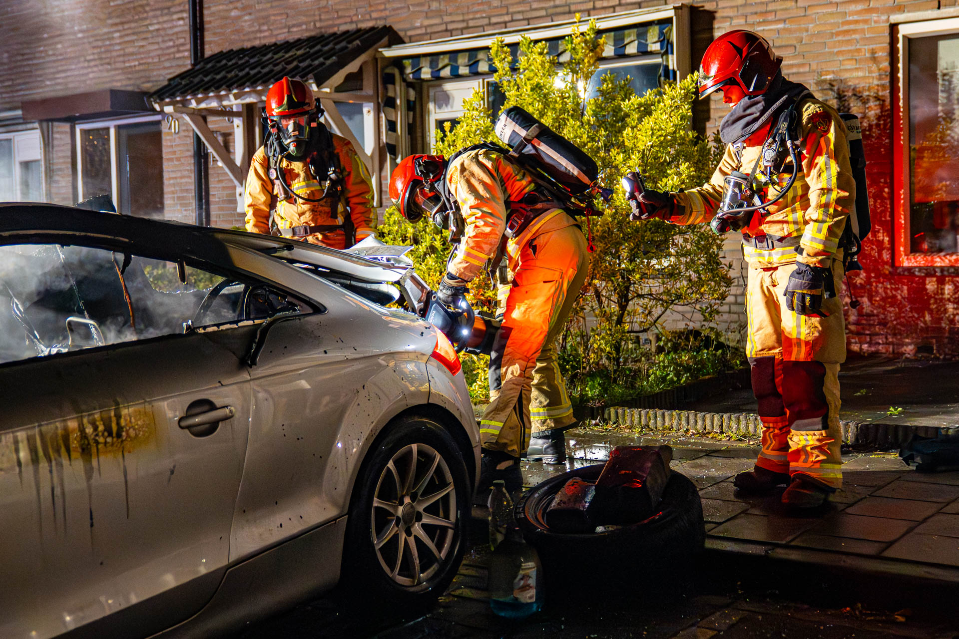 Bij aankomst van de brandweer sloegen de vlammen al uit de auto. Buurtbewoners waren wakker geworden van een harde knal en zagen toen de brandende auto op de parkeerplaats staan. De auto stond al een vijftal weken op de parkeerplaats. Buurtbewoners gaven aan dat deze vermoedelijk gestolen is.