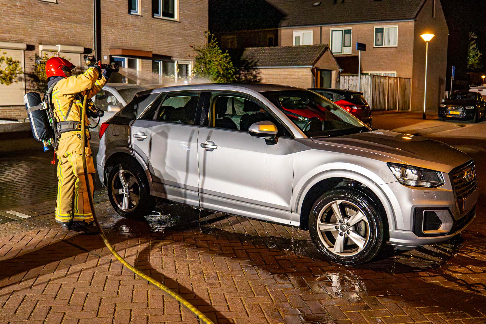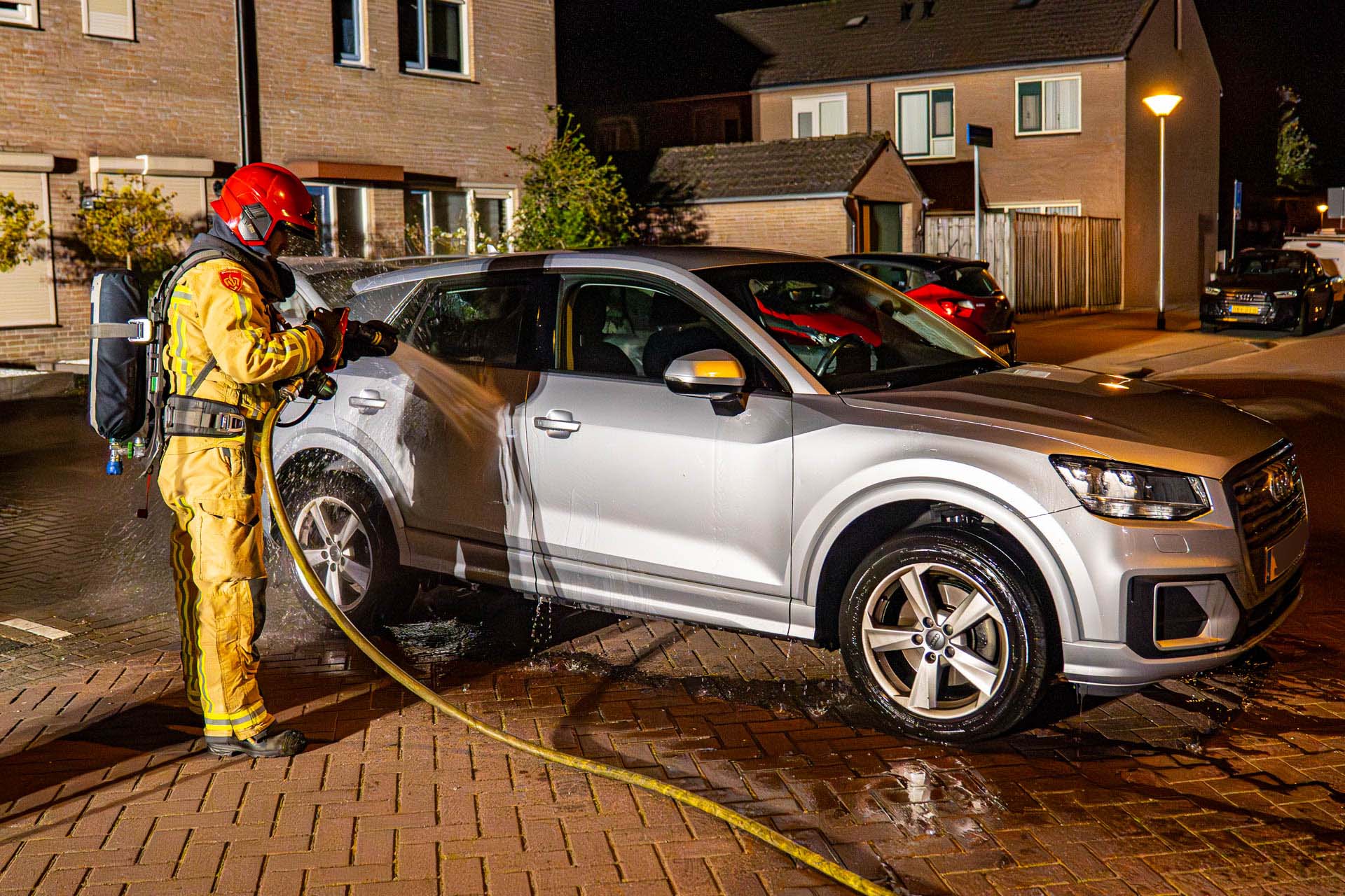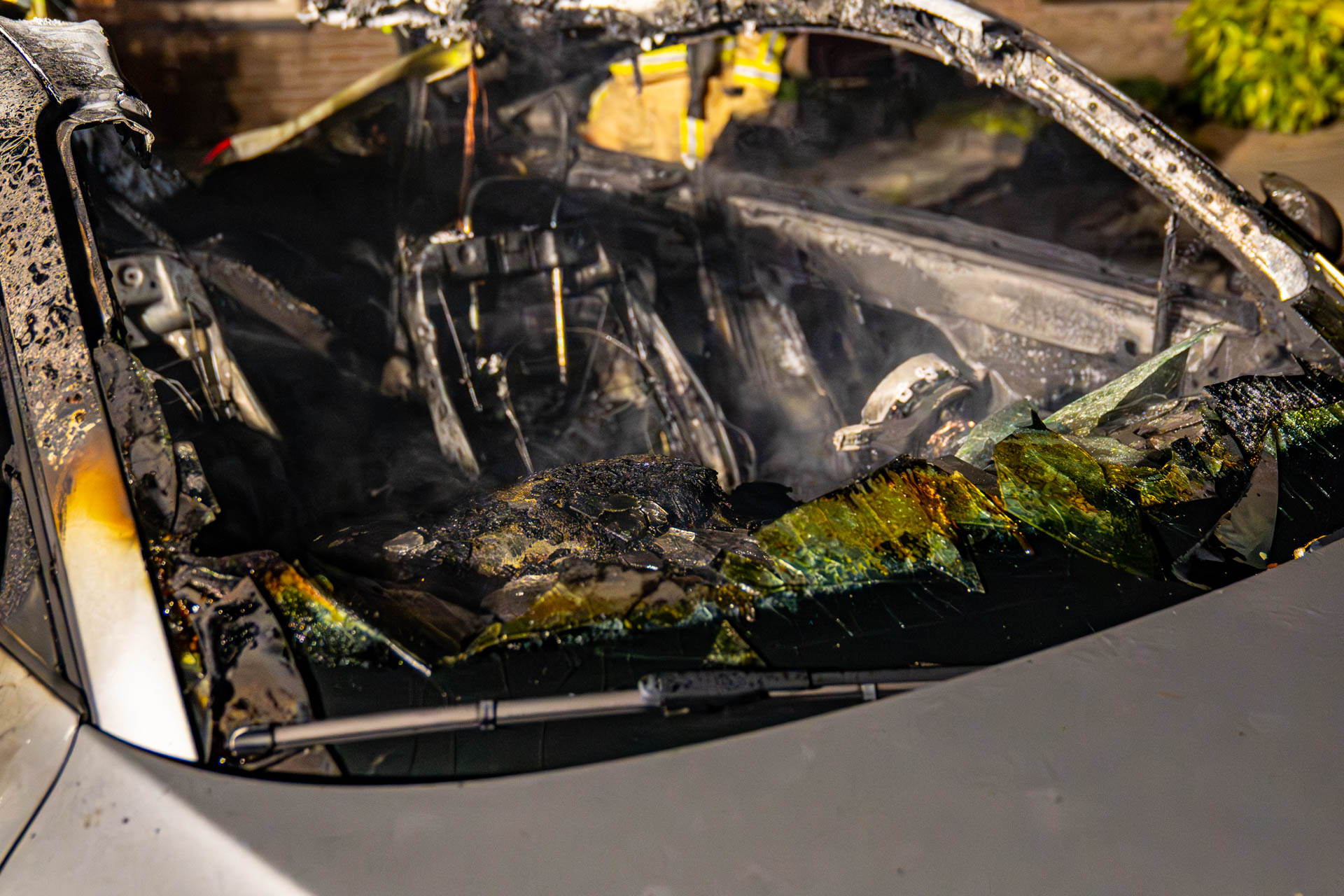 Een auto die pal langs de brandende auto stond, kon tijdig door de eigenaar worden verplaatst. De brandweer heeft deze auto later schoon gespoten, want het voertuig lag vol glas afkomstig van de brandende auto. Op het oog had de auto verder geen zichtbare schade opgelopen.
