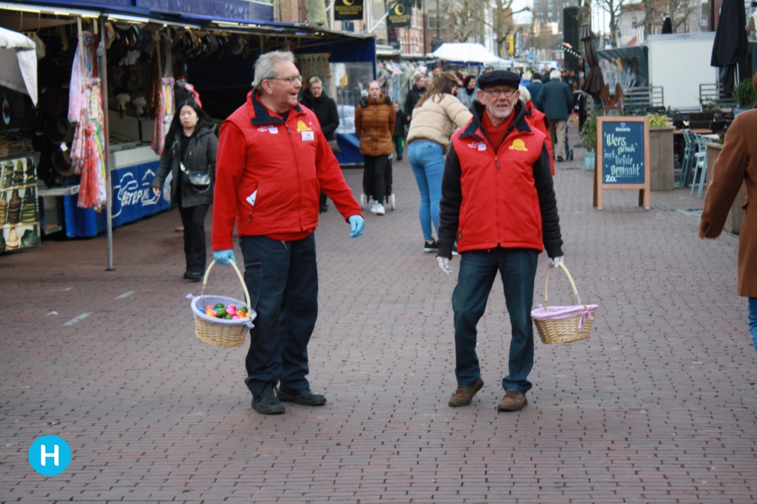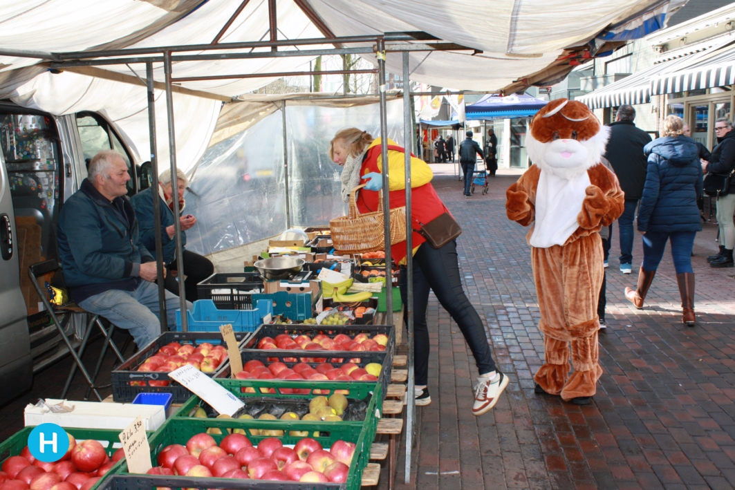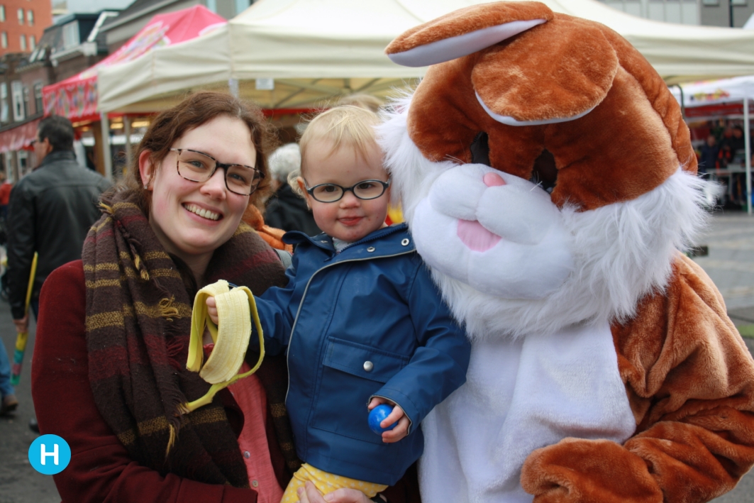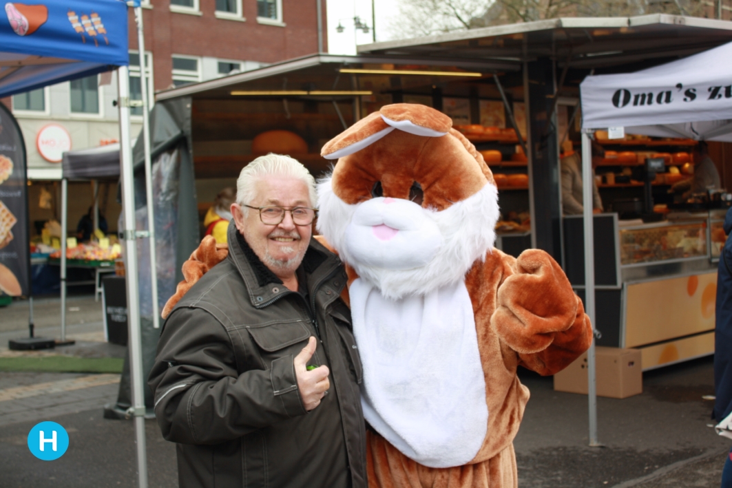 Omdat het bijna Pasen is hebben de marktkooplui besloten om de bezoekers een lekker paaseitje te schenken. Zodoende bezoekt de paashaas op zaterdag 9 april de Helmondse markt. En liep er een vrolijke en vriendelijke paashaas tussen het publiek.