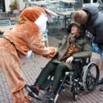 En deze paashaas is gek op knuffelen en dus werd bijna iedereen geknuffeld. Vooral de kinderen vonden het prachtig en menige ouder kon het niet laten even een foto te maken van deze lieve paashaas met het kroost. Er waren enkele kinderen die wel even schrokken van de paashaas en wilden dus niet op de foto; hoe de ouders ook smeekten, ze wilden het niet.