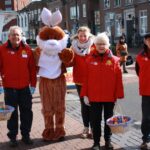 Wel kreeg iedereen een lekker paaseitje en de meeste eitjes werden ook meteen gepeld en genuttigd. Zelfs wethouder Erik de Vries vond het leuk om even met de paashaas op de foto te gaan. Aan het eind van de dag was de paashaas wel een beetje moe en sjokte met haar assistente terug naar huis om lekker even onder uit te zitten in een luie stoel. De paashaas bezoekt vast volgend jaar ook weer de Helmondse markt, gezien het enthousiasme van de bezoekers.