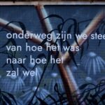Onderweg zijn we steeds van hoe het was naar hoe het zal wel en loop ik door de tijd onderweg zijn we steeds onderweg en fiets ik door dan kijk ik door het groen voorbij hier en daar nu en toen onderweg zijn we steeds onderweg