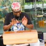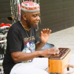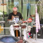Stadskunstenaar Daisy Roefs hield afgelopen zaterdag weer een workshop in het paviljoen in het Geukerspark. Daar is iedereen welkom om te werken aan eigen werk voor de tentoonstelling Museum Helmond X Vrijheid. Ernesto Arrendell trad deze dag op met een muzikale improvisatie voor bezoekers en deelnemers. Zíjn visie op wat vrijheid voor hem betekent. De in Aruba geboren multi-instrumentalist en performer kwam naar Nederland in 1976. Hij woont en werkt in Helmond. Vanaf 1980 houdt hij zich bezig met muzikale voorstellingen.