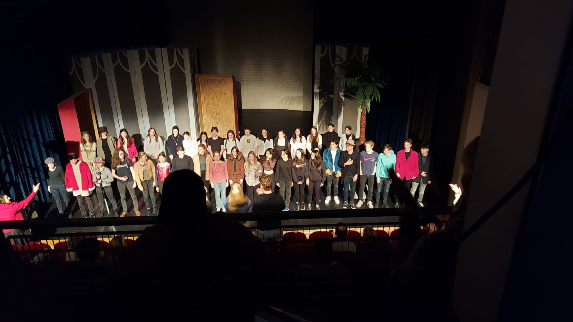 De leerlingen verzorgen ook het licht en geluid voor de voorstelling.