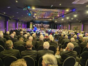 “Onze dirigent Ine Noijen is de tweede dirigent van Mannenkoor Lambardi”, verklaart secretaris Nico Vaessen de samenwerking bij het jubileum. “Dus Lambardi wilde graag meewerken aan dit concert.” De samenwerking ging zelf zo ver dat beide koren op het einde van het concert gezamenlijk het nummer ‘Can’t help falling in love’ ten gehore brengen. Een iconisch nummer voor het eerst gezongen door Elvis Presley. “Wat dus op dit moment ook ons favoriete nummer is geworden”, zegt Vaessen vrolijk. “De muziekcommissie heeft hier een mooie keus gemaakt.”