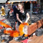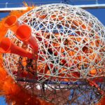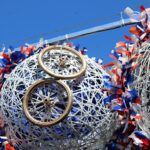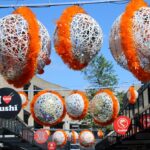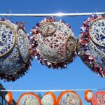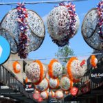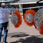 Het was een actie van het winkelcentrum om het er zo sportief en gezellig mogelijk te maken. En alles stond in het teken van de drie grote sportevenementen die dit jaar plaats vinden. Het voetballen, de Olympische Spelen en de Tour de France. Vandaar de grote medailles, de fietswielen en de vele toeters die in de ballen werden gestoken. Er werd de hele dag van vroeg tot laat hard gewerkt om het karwei klaar te krijgen. In de middag waren de mannen bezig met het aansluiten van de stroomkabels en een dame was bezig met de laatste versieringen. Maar zoals je ziet: het eindresultaat is prachtig.