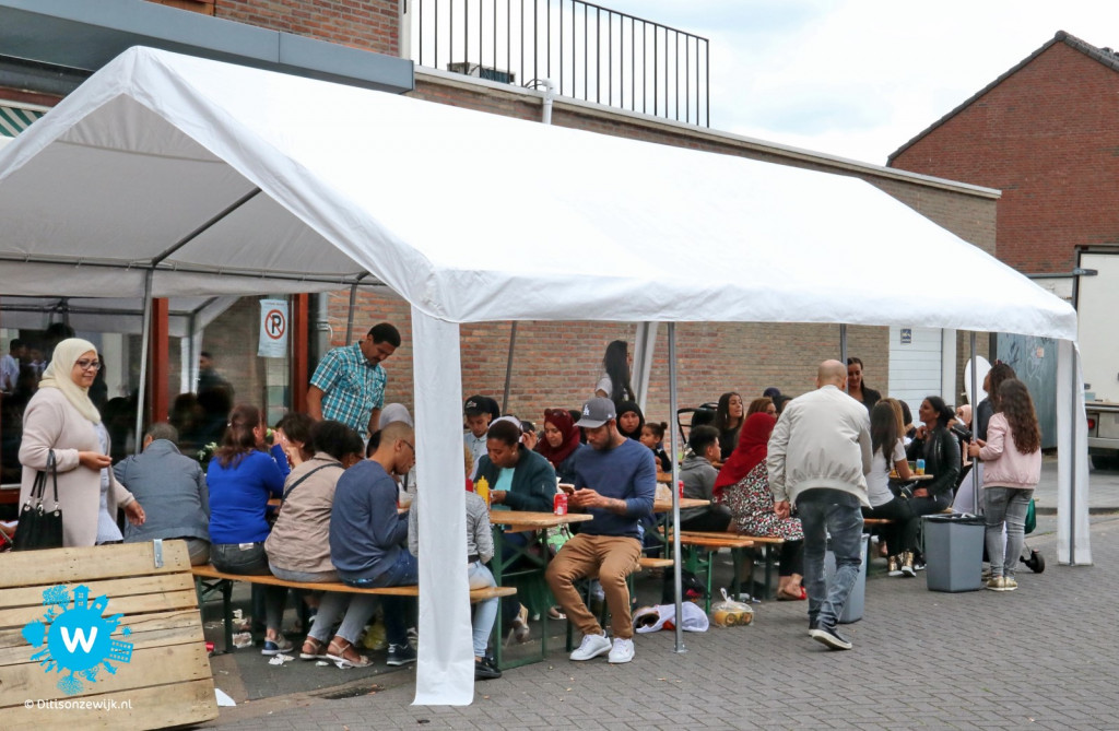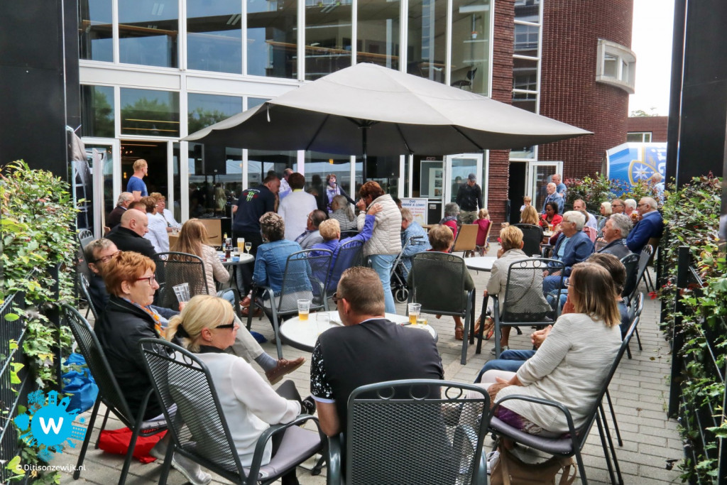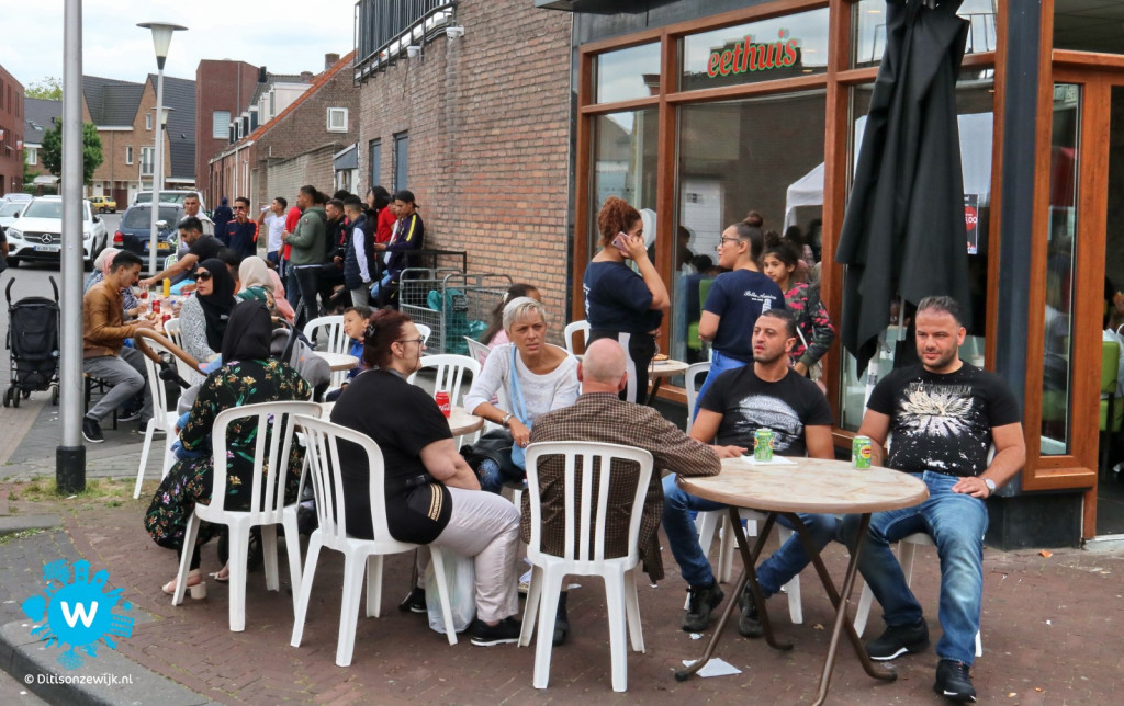 Ook bij wijkhuis De Fonkel was het goed toeven, er was een groot terras aangebracht en hier was er een muzikaal optreden van het duo Harrie en Lenny, waarbij het publiek zich zowel op het terras als binnen, heel goed vermaakte.