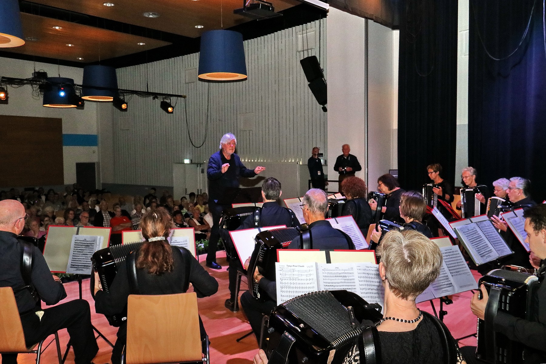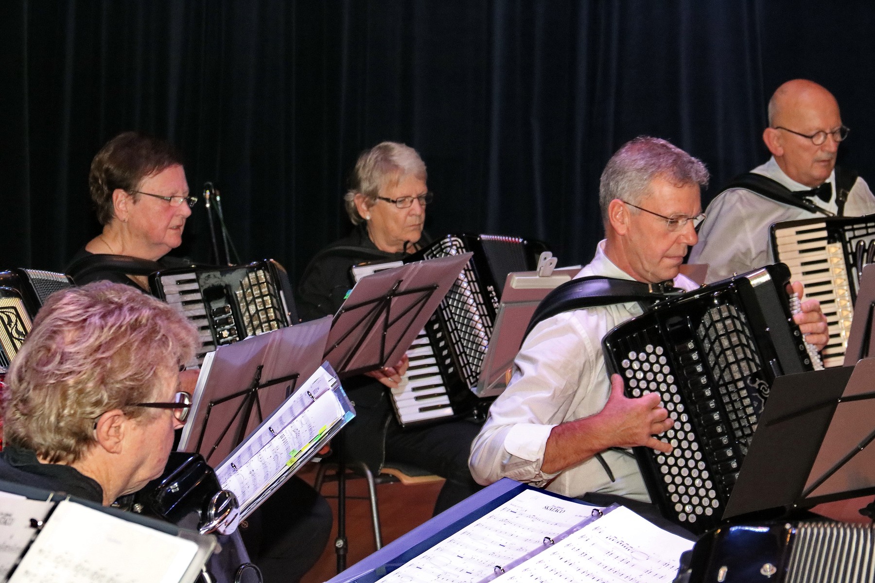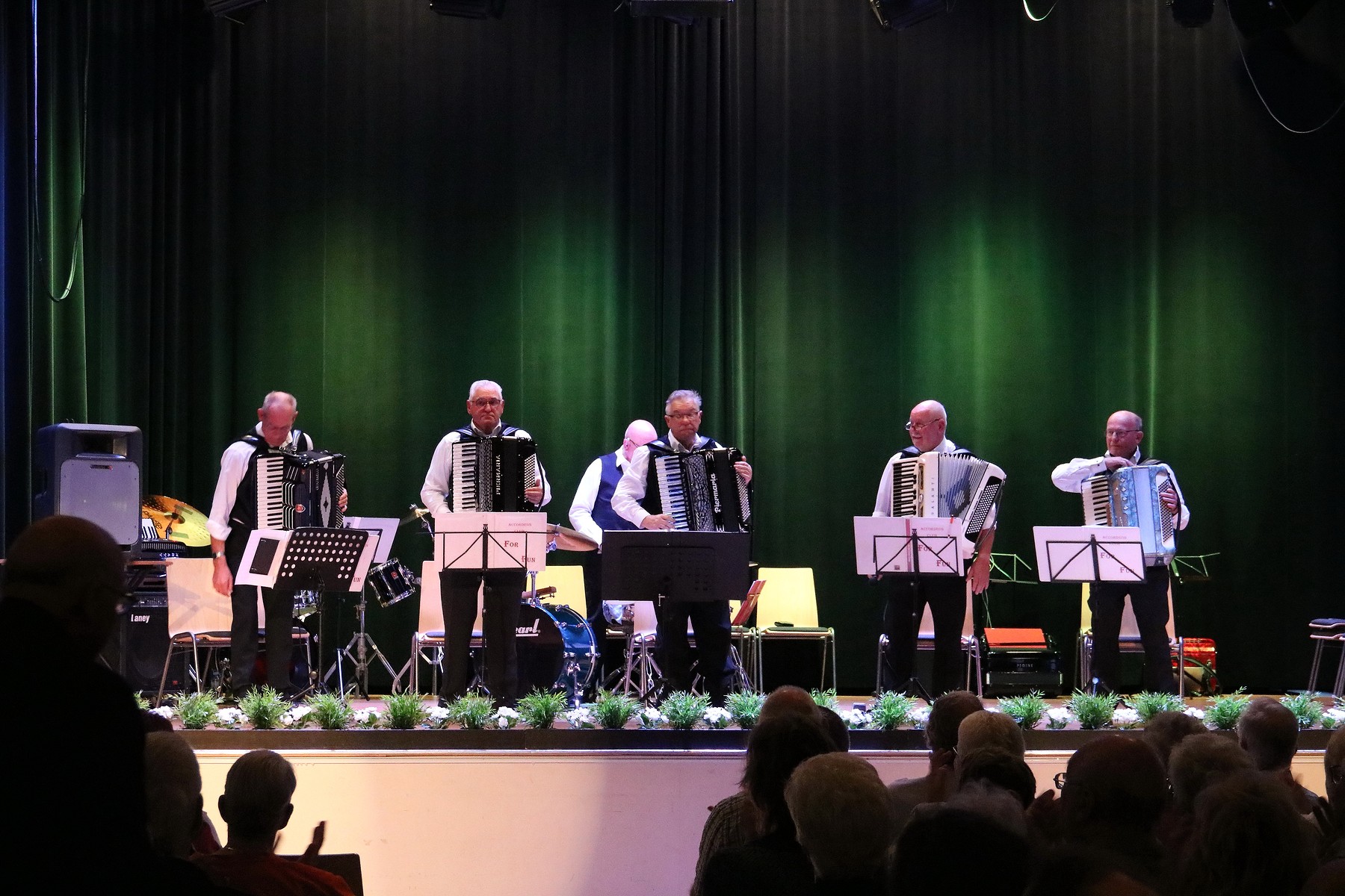 Het was weer een geweldig muzikaal treffen in het wijkcentrum de Fonkel, bij het optreden van de 3 Helmondse accordeon orkesten. Het is de alweer een paar jaar geleden dat dit soort optreden plaats vond op de zelfde plaats . Het aanwezige publiek dat in grote getale naar de uitverkochte concertzaal in de Fonkel was komen kijken en luisteren, heeft zich uitstekend kunnen vermaken. Er werden door de accordeonorkesten, een diversiteit aan muziekstukken ten gehore gebracht. De organisatie , die deze muzikale middag verzorgde en stond onder de bezielende leiding van spreekstalmeester Wilco van Laarhoven, had alles goed in de hand en verdiende hiermee ook een pluim. De opening van het concert, werd gedaan door For Fun. Zij openende met Les Patineurs (The Skaters’ Waltz) van Emile Waldteufel, het spits af. Ook werd door hun een Amsterdamse medley ten gehore gebracht, waarbij menige toehoorder begon mee te zingen. For Fun sloot af met twee arrangementen van geestelijk vader Jan Martens, waarna hen een uiterst terecht applaus ten deel kwam Tijdens de eerste podiumwissel vertolkte Henk Ceelen , begeleid door accordeonist Carel de Bruijn en nostalgische foto’s, ‘Umdè’k Er Zo Van Haaw’; een ode aan Helmond. Toen de gordijnen weer open gingen, zat daar het veertienkoppige gezelschap van Helmond AK. Met lichte en klassieke muziek zorgden zij voor een muisstille zaal. Vooral hun vertolking van ‘Morgenstimmung’, misschien wel het bekendste werk van de Noorse componist Edvard Grieg, was van grote schoonheid. Het concert van de drie accordeonorkesten werd afgesloten met een optreden van Accordeana. Zij speelden vijf virtuoos uitgevoerde muziekstukken van onder meer de heren Tchaikovsky, Vivaldi en Bach en gaven deze middag het einde dat het verdiende. Met het slotnummer, De Fabriek, kwamen twee belangrijke Helmondse elementen fijntjes samen: industrie en accordeonmuziek. Dat in elk geval het laatste nog zeer relevant is, werd gisteren wel duidelijk. Na afloop van dit concert, gingen de bezoekers zeer tevreden naar huis en werd in de lobby nog gezellig nagepraat over deze middag in de Fonkel. In de fotoreportage treft u een beeld van de deelnemers aan deze middag.
