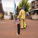 Zij werd om hulp gevraagd voor het verwijderen van het paaltje wat de doorgang van de Veestraatbrug afsluit. Dit moest voor zaterdagavond weg, zodat de hulpdiensten indien nodig erdoor kunnen. Het paaltje kon niet meer op de gebruikelijke manier met een sleutel worden weggehaald. Dus de kop moest eraf. Dat gebeurde absoluut op een verantwoorde manier, alles afgezet met lint en handhaving. Zodat gedurende het weekend eenieder met een veilig gevoel kan gaan feesten, want de hulpdiensten staan paraat!