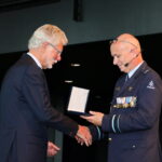 De ceremoniemeester las het volgende bericht voor, De Commandant Luchtstrijdkrachten, JD. Luyt heeft besloten toe te kennen, “Ereteken voor Verdienste in Brons”. Dit vanwege ruim 20 jaar grote en niet aflatende inzet voor Veteranen. Speciaal voor de Veteranen van Militaire luchtvaart op vele vlakken, zoals bestuurslid, organisatie van ceremonieel, regelen en leiden van Erewachten bij uitvaarten van Veteranen, het persoonlijk ondersteunen van individuele Veteranen en nabestaanden.