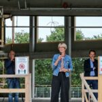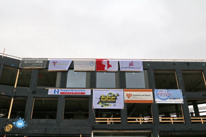 De vlaggen van OMO, Gemeente Helmond, Dr. Knippenbergcollege en architectenbureau RoosRos worden ceremonieel bovenaan het gebouw opgehangen. Daarmee kan er officieel gezegd worden dat “de Knip” weer een stap verder is in de nieuwbouw. Ondanks de coronacrisis heeft de bouw geen vertraging opgelopen. Het originele plan, oplevering in mei 2021, wordt gehaald. “Daarvoor grote complimenten aan de bouwers”, zegt wethouder Harrie van Dijk. “Zij weten dit ondanks alles toch voor elkaar te krijgen. Chapeau daarvoor.”