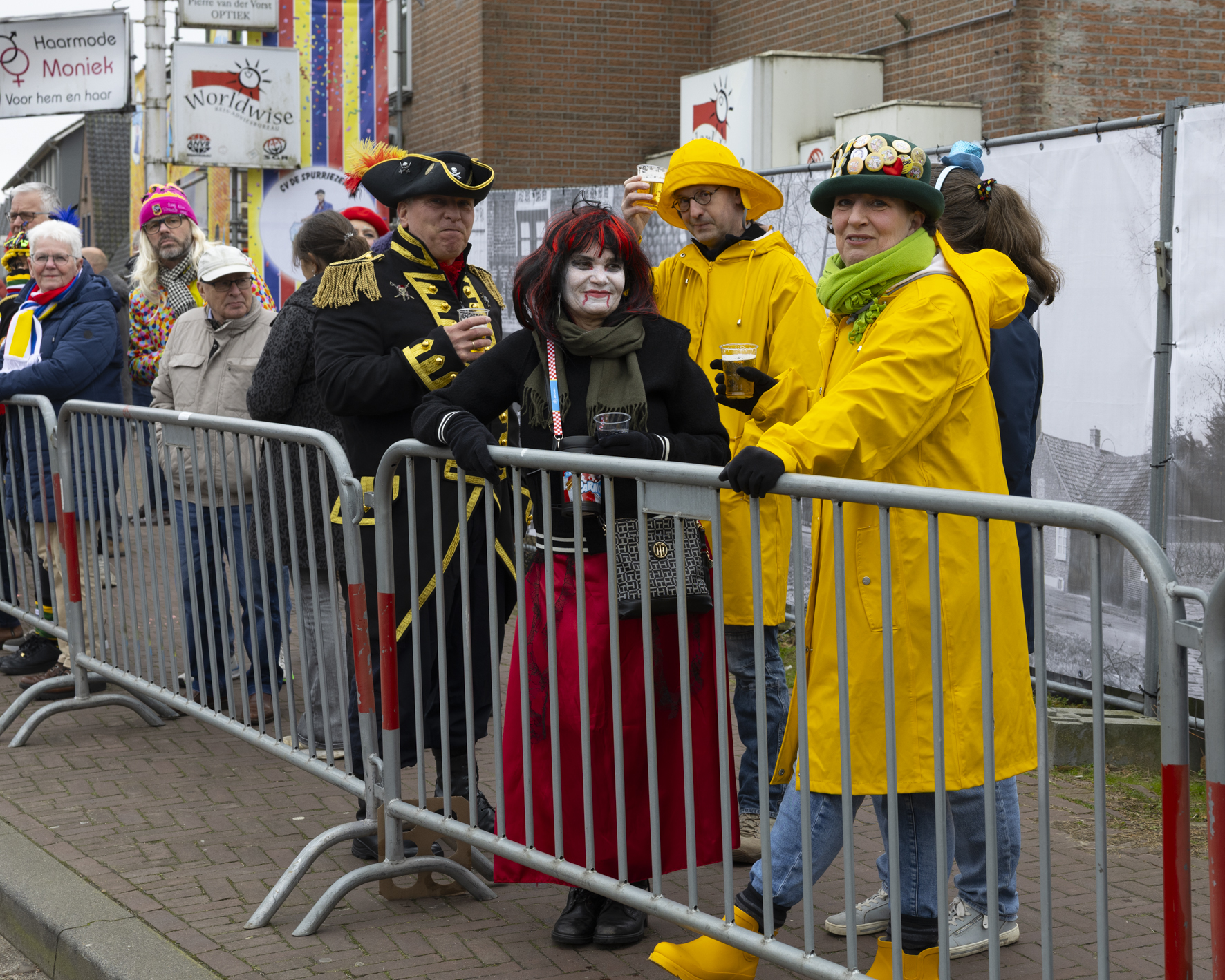 Het was in de Dorpsstraat behoorlijk druk en de festiviteiten begonnen al lang voordat de aftrap van de optocht gegeven werd. Er was een springkussen opgesteld voor de kleintjes, vrolijke carnavalsmuziek schalde uit de speakers en uiteraard werd er ook aan de inwendige mens gedacht.