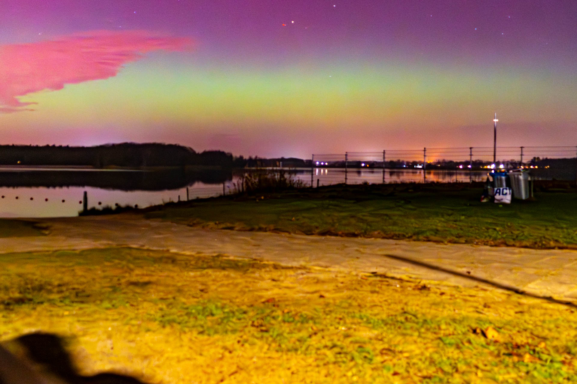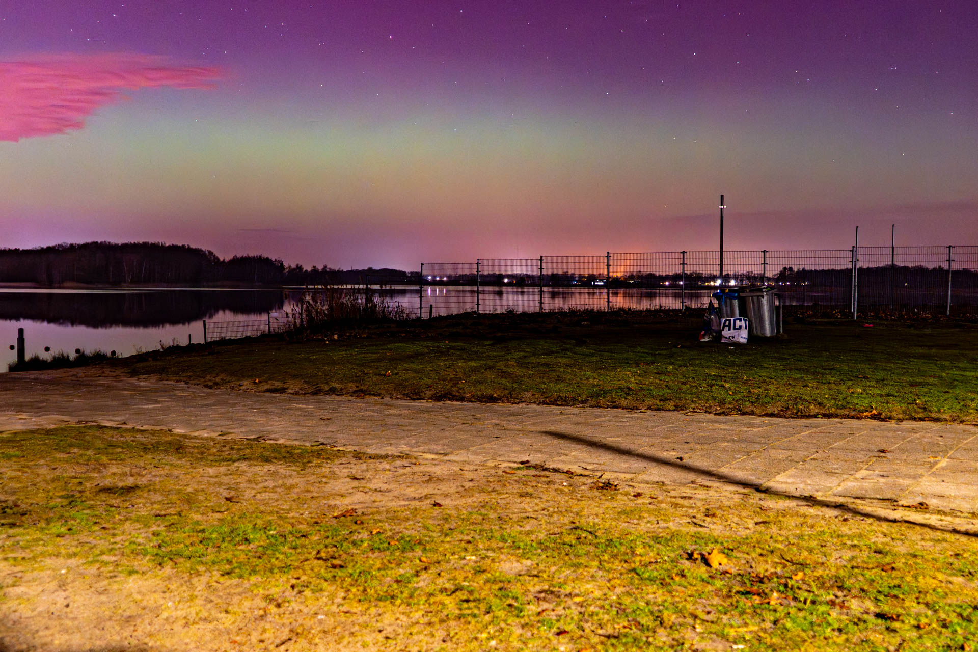Het noorderlicht is maandagavond opvallend goed te zien boven Nederland. Ook bij recreatieplas Berkendonk in Helmond leverde dat bijzondere foto’s op.