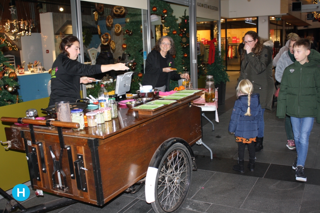 In de bakkerij, waar heerlijke taarten, vlaaien en andere lekkernijen worden gemaakt, stonden enkele dames van Jibb+. Zij deelden gratis poffertjes en gezonde drankjes uit. In de knutselworkshop, waar kinderen druk bezig waren hun koekjes te versieren, zag ik ineens de cadeau-machine staan. Als je daar een tekening van een cadeau ingooit, komt er vervolgens aan de andere kant het cadeautje uit dat op de tekening staat. Kortom, op visite bij de Kerstman is altijd een feest.