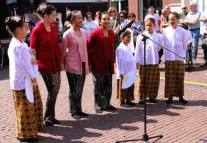 Terwijl de lokale Menarigroep het lied ‘Tanna Subé’ zingt, verzamelen zich steeds meer bezoekers voor het podium. Het belooft een dag vol muzikale afwisseling te worden op deze Pasar Maluku. Stichting Ain ni Ain heeft haar best gedaan om de cultuur en culinaire kunsten van de Molukken naar Helmond te krijgen. De markt staat vol kleurrijke kramen. Naast kleding en snuisterijen is er vooral eten. Véél eten. Ook aanwezig is Stichting Landelijk Moluks Monument om aandacht te vragen voor het monument dat op 20 juni 2026 in Rotterdam wordt onthuld.