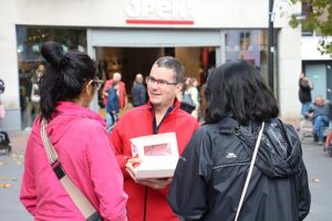 Vandaag waren we aanwezig op de markt in Helmond waar we trakteerden op iets lekkers (zie foto’s) en we waren in Amersfoort bij het 50-jarig bestaan van de partij.