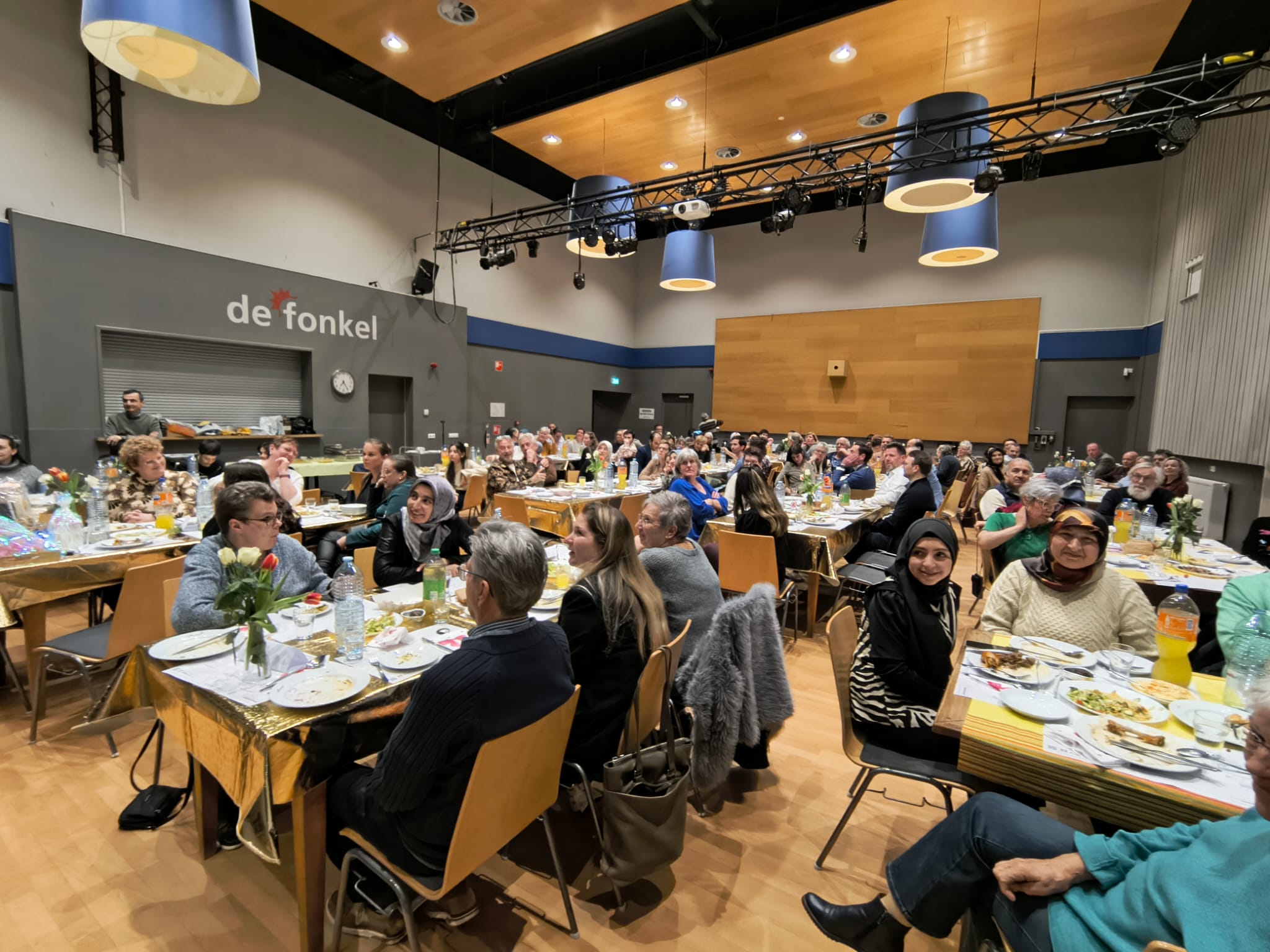Iftars zijn de maaltijden die tijdens de ramadan direct na zonsondergang worden gegeten. Iftar betekent ‘verbreking van het vasten’. De vastenmaand staat bij veel moslims in het teken van verbinden. Samen eten is daar een onderdeel van. Afgelopen donderdag namen moslims en niet-moslims plaats aan de tafels van de Iftar in de Fonkel. Alles verzorgd door Stichting Prisma uit Helmond. De vastentijd duurt nog tot 19 maart. Stichting Prisma nodigt daarom graag iedereen uit om aan te schuiven bij een moslimgezin voor een Iftar-diner.