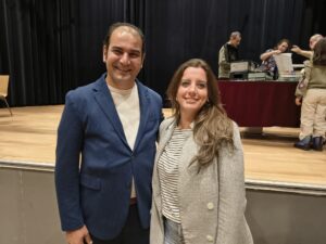 Yoni en Nisa houden tijdens deze avond niet alleen een kleine quiz voor alle aanwezigen. Zij vertellen samen ook hoe zij door taal verbonden zijn geraakt. “Yoni is de taalcoach van Murat, van mijn vader. Ik weet nog zo goed die ene dag dat hij thuis kwam van de taalles. ‘Ik kan eindelijk Nederlands praten en leren.’ Hij was dolblij en zó enthousiast en trots. Dat was ook voor mij een prachtig moment om mee te maken. En na een tijdje raakten onze families zelfs bevriend.” Taalcoach Yoni kwam via de landelijke stichting Het begint met Taal in contact met de familie. “Ik werk in de communicatie. Ik wilde graag mijn steentje bijdragen bij het werk van de COA in het AZC in Budel. En vanuit het coachingscontact is er een mooi persoonlijk contact gegroeid.”