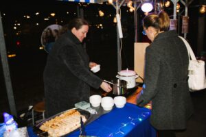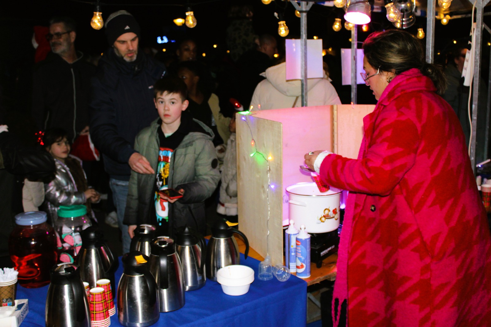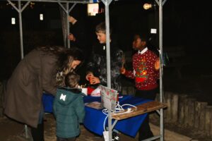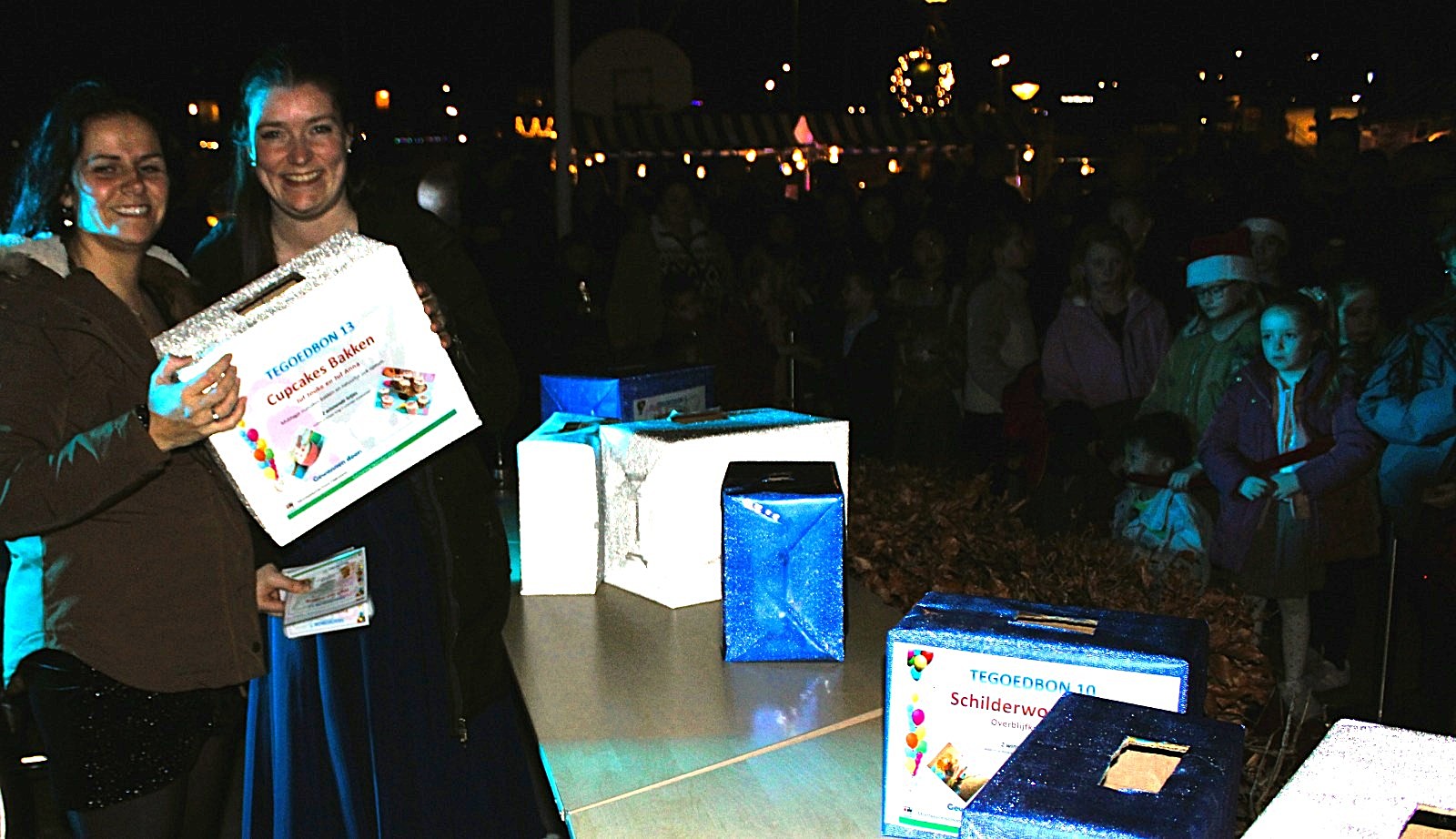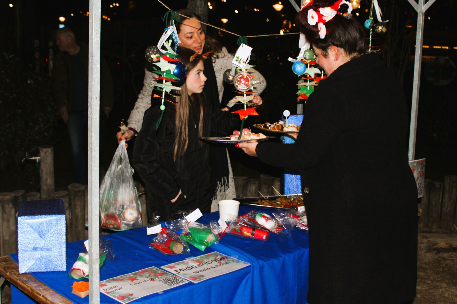 Na het kerstdiner op school stonden de leerlingen en hun families op het schoolplein om de zelfgemaakte knutsels te kopen. En te wachten op het moment dat de loterij zou beginnen. Want ook dit jaar waren er weer bijzondere prijzen te winnen. Wat te denken van een bioscoop op school of zelfs een slaapfeestje. Ook de escaperoom met daarna pannenkoeken eten was erg gewild.