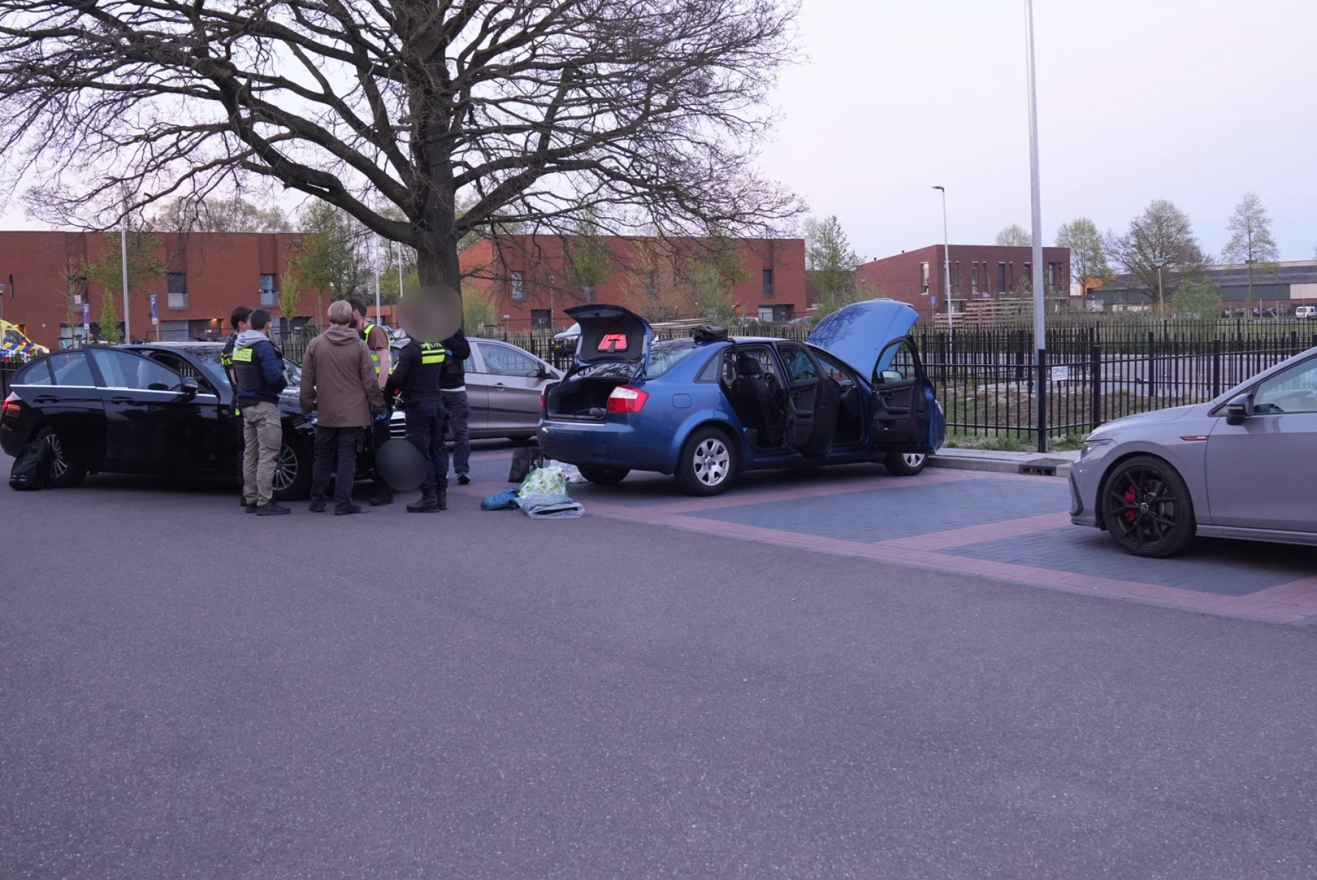 De achtergebleven blauwe Audi werd volledig doorzocht. Volgens de politie is er contant geld gevonden en verdachte pakketten. Ook de twee personen in de blauwe Audi zijn aangehouden.