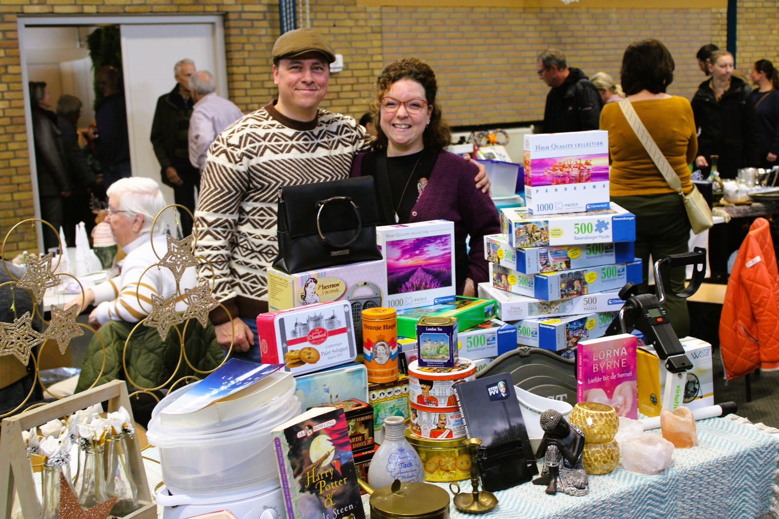 Willem en Meggy van Brakel staan voor de eerste keer op de Van-Alles-Wà-markt van Senioren Brouwhuis. “We verkopen ook via Marktplaats en gaan naar kofferbaksales. Voor ons is het een uit de hand gelopen hobby”, zeggen beiden. “Onze dochter Dylana houdt heel erg van rommelmarkten. Daarom stonden wij samen op onze eerste markt in Oss”, vertelt Meggy.