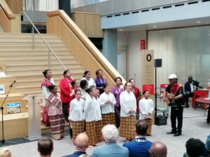 De optredens van deze avond kwamen van de Awasa groep met hun Surinaamse Awasadans, daarbij begeleid op onder andere de apintiedrum. Ook de lokale Menari groep maakte haar opwachting met een optreden van jong en oud, samen met hun begeleidingsgroep. Zij presenteerden traditionele Molukse dansen en brachten ook een Moluks lied ten gehore. De avond werd afgesloten met Antilliaanse live-muziek.