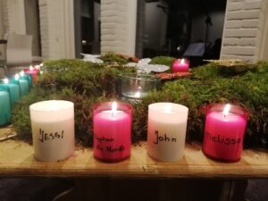 “Op deze dag zijn veel mensen met elkaar verbonden. Iedereen die vandaag een kaarsje aansteekt, thuis of bij een herdenking, doet dit ter nagedachtenis aan het verlies van hun kind”, opent Willeke Altink deze bijeenkomst van Wereldlichtjesdag. “Daarbij eren en herinneren we samen alle overleden kinderen met lichtjes en luisteren naar muziek, woorden en gedichten.”