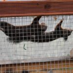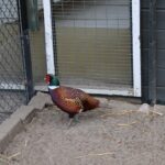 Bij de eekhoorntjes was het een ander verhaal. Zij waren opgewonden van mijn aanwezigheid en vlogen als straaljagers over en langs mij heen. Toen ik een klein eekhoorntje zag ( past ruim in de handpalm) begreep ik het wel en verliet snel de kooi. Verder lopend langs de kooien goudfazanten en cavia’s viel het mij op dat er om mij heen gewoon kippen, ganzen en katten liepen. De kippen hadden het goed naar de zin vertelde Juliette. De katten vangen muizen en geven ze aan de kippen.